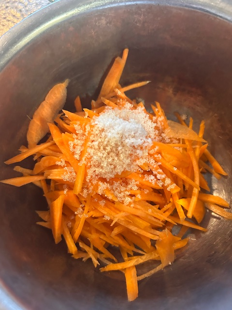 にんじん、玉ねぎ、パプリカは塩と砂糖を少し混ぜてしんなりさせておきます。