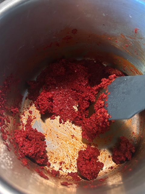 4. 1.のリンゴ野菜ペーストと3.の唐辛子ペーストを混ぜ合わせる
