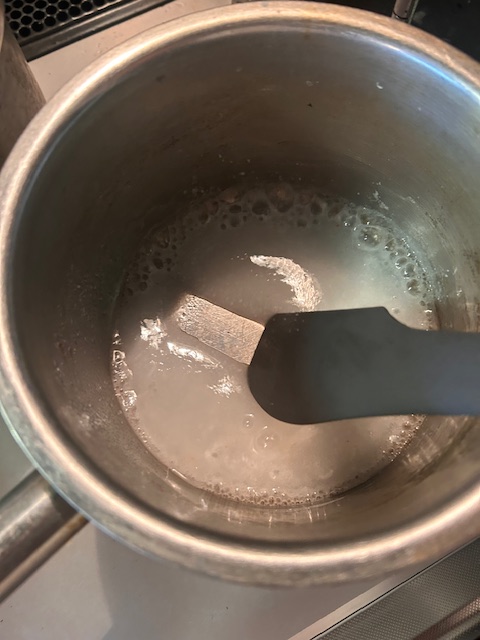 3分ほど加熱するととろみが出てきます。火を止めて冷まします。