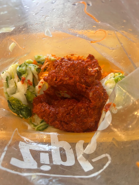 - 【2kg一気に漬ける場合】全てのヤンニョムと2kgの白菜を一気に和えます。
